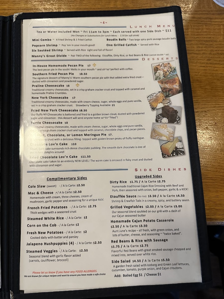 For those seeking a unique experience, the deep-fried pecan pie has become an irresistible favorite, tempting diners with its delightful crunch and rich filling. The attentive staff, like the knowledgeable Holly and Rebecca, enhance the dining experience, ensuring that guests feel welcomed and well taken care of. Whether you’re indulging in catfish with mac and cheese or exploring the extensive menu, Shrimp Boat Manny's offers a perfect blend of comfort and culinary excellence that leaves a lasting impression.